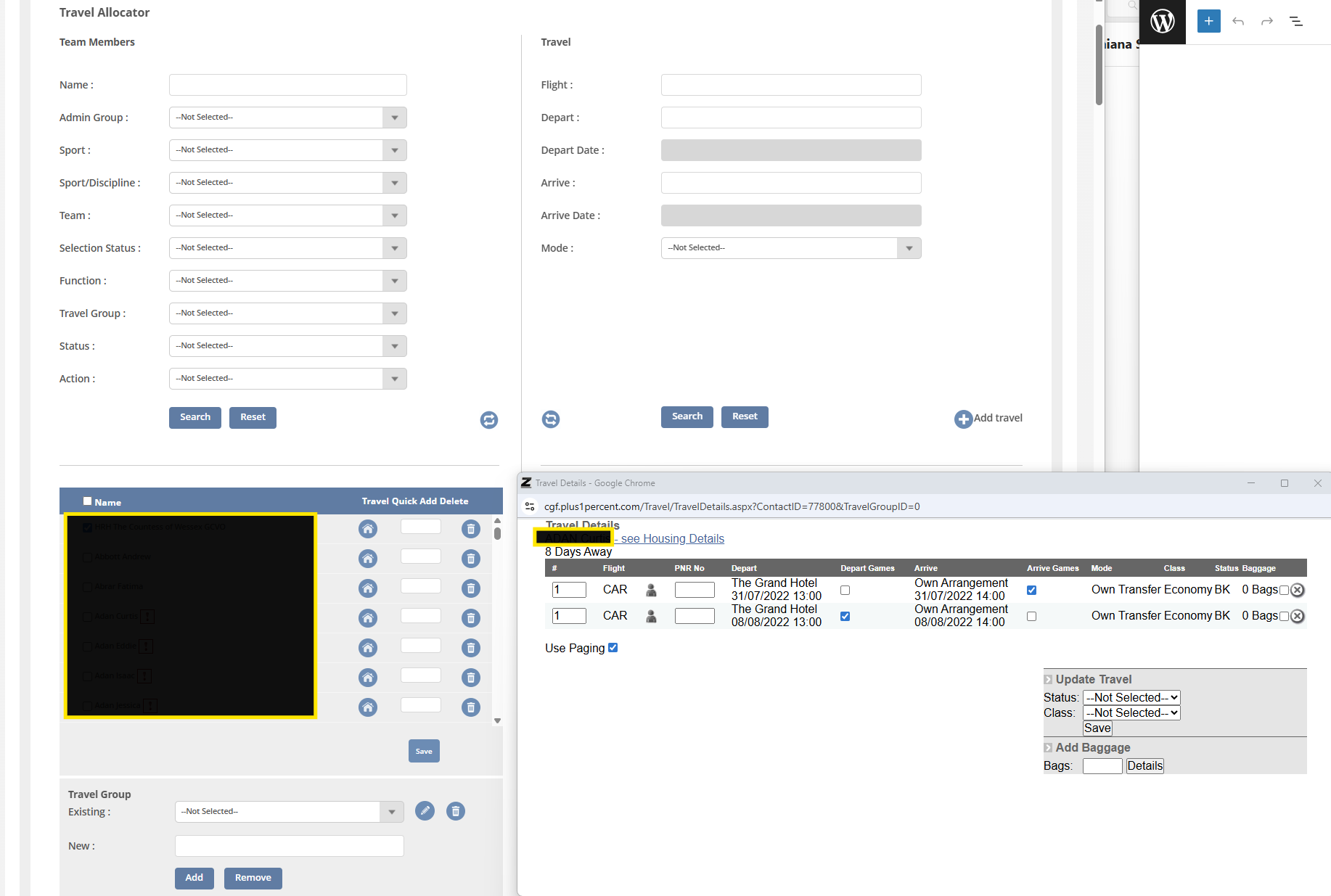 Once a leg of travel (ID number) has been assigned to an individual, you can click directly on the team member’s name and all the travel details will appear (as seen above)