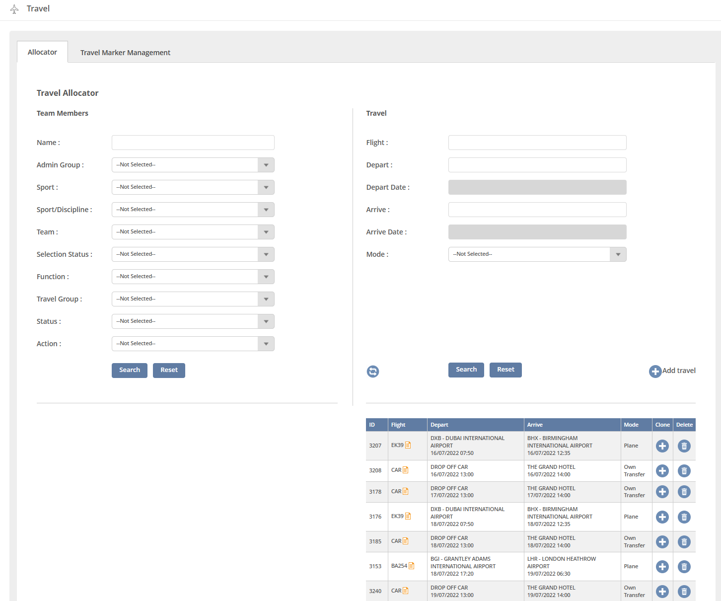 Cloning a leg of travel saves you time from entering similar itineraries over and over again. You can clone a leg of travel and change ANY of the required fields. For example if you have athletes arriving on the same flight 3 days in a row, simply change the date.