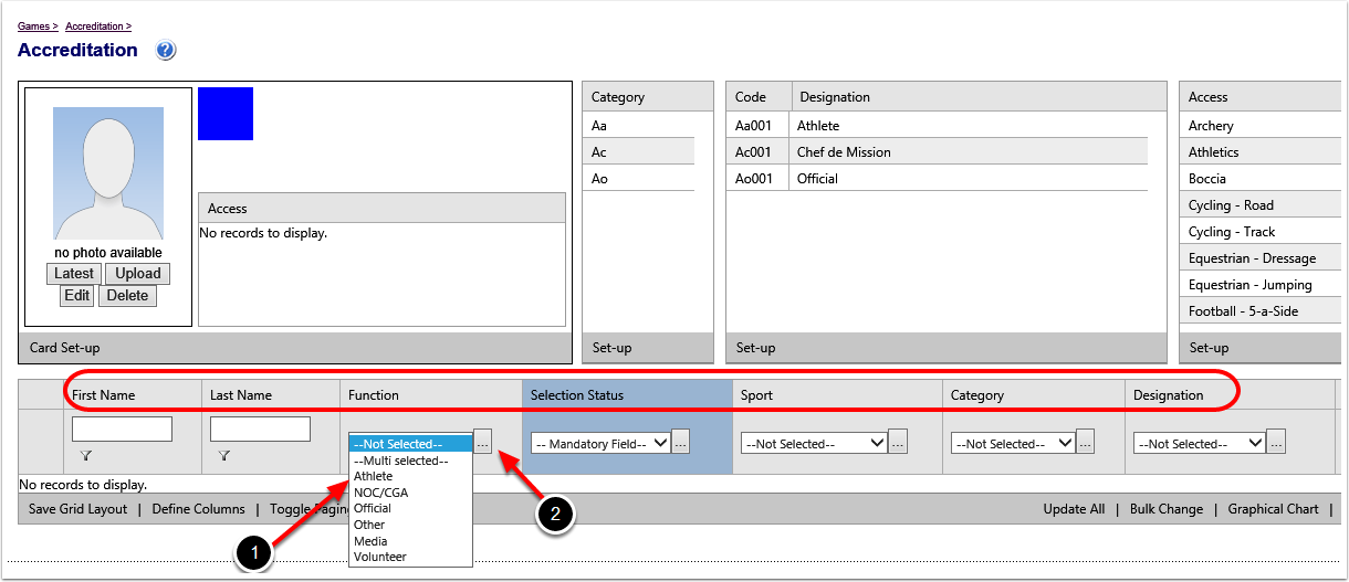Establishing your Long List comes from ‘Adding Team Members’ to a Games and providing them with a Games Function, Selection Status (and sport if applicable). Once you have added athletes and officials to the ‘Long List’ you can manage their accreditation from the ‘Accreditation Module’.