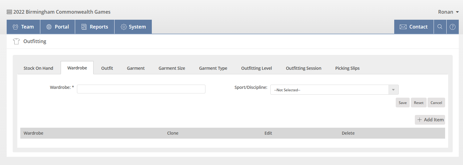 - If the garments are sport specific, for example you are supplying the cyclists with a skin suit then you can limit the wardrobe to only be for a specific sport. If you are not providing sport specific gear then do not use this feature.