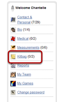 The second place the Kitbag will appear is in the ‘My Team’ Panel (if you are set up as an Official).